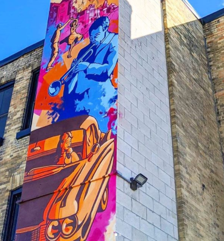 However, upon returning to Minto he is “feeling refreshed” as he gets back into the swing of things, noting that “It’s just nice to be back here, see some familiar faces, new faces, and make some art in this awesome community.” After spending almost two weeks in Harriston last summer, Blaze began to understand the town and wanted to incorporate a lot of that into this year’s postcard mural. Finally, Blaze adds that anyone who is interested in a career in art, particularly murals, shouldn’t “be afraid to talk to people who own properties and reach out to people” in general. ”Just put up some boards and experiment a
